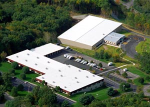 Aerial view of the Basement Systems and Cleanspace International Headquarters -- a 92,000 square foot facility located in Seymour, CT.