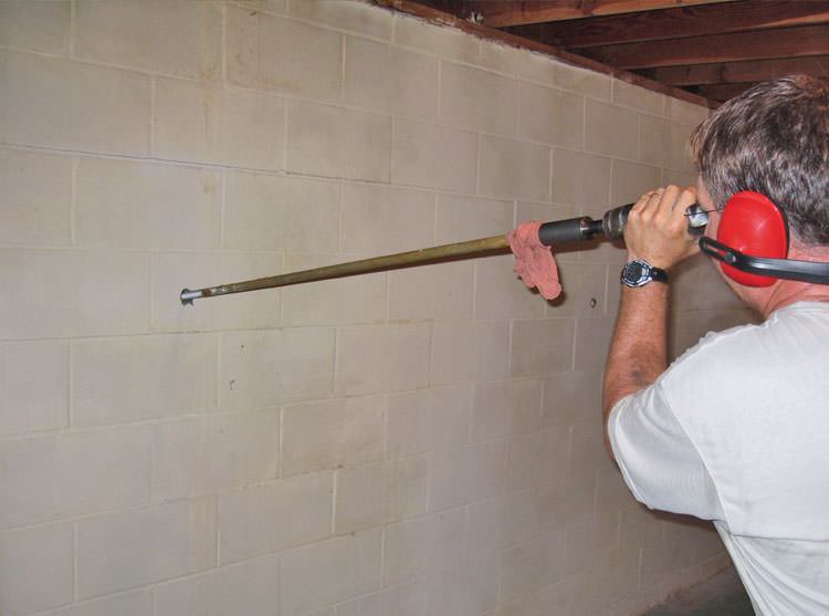 Unlike helical tiebacks, foundation wall anchors need only a small 1-in.-diameter hole to be drilled in your foundation wall for each anchor's steel rod to pass through. This is applicable for both poured concrete walls as well as concrete block walls.