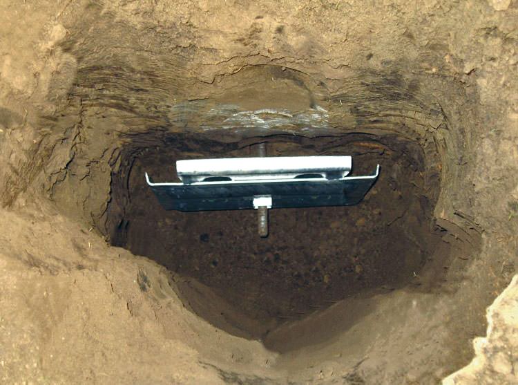 Soil pressure keeps each earth anchor in a fixed position, allowing wall anchors and adjustment nuts to exert pressure on the foundation wall. A galvanized coating on all components ensures corrosion resistance.